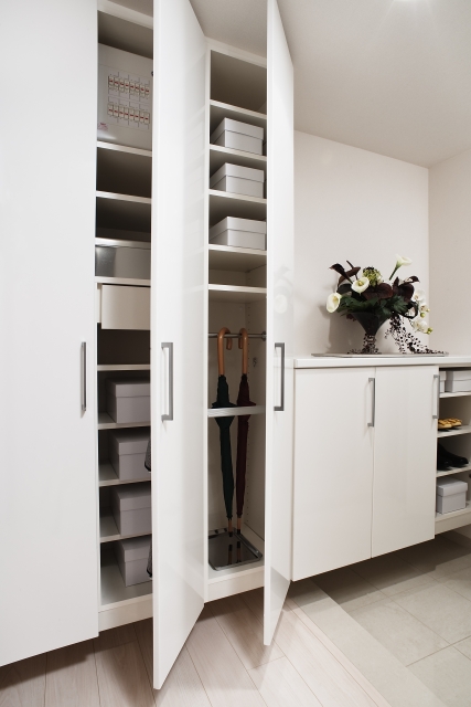 玄関の収納(シューズクロークや下駄箱)に、傘を専用でしまうスペースを確保します。