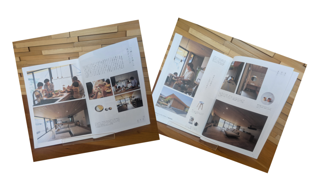 誌面には、キッチンで作業をしながら、隣で遊ぶお子様を見守れる、家族の絆が深まる空間がたっぷり紹介されています。料理やお食事の時間が、そのまま家族の団らんになる——そんな理想の暮らしが写真を通して伝わってきます。