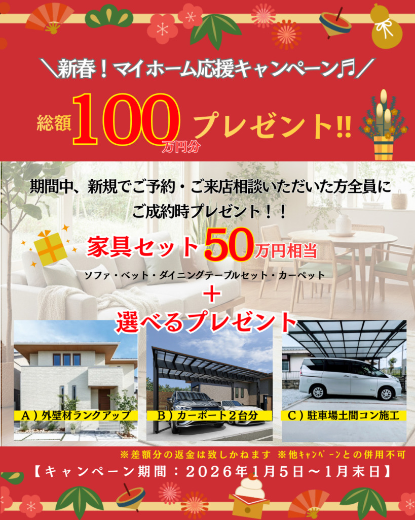 スリーピースホームでは、新しい一歩を踏み出す皆様を全力でバックアップするため、【新春マイホーム応援キャンペーン】を開催いたします!