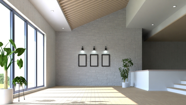 - 吹き抜け(ふきぬけ): 1階に日が届かないなら、2階の窓から光を「落とす」という考え方です。