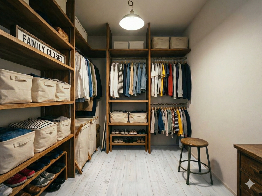 - 玄関近くにファミリー収納をつくる