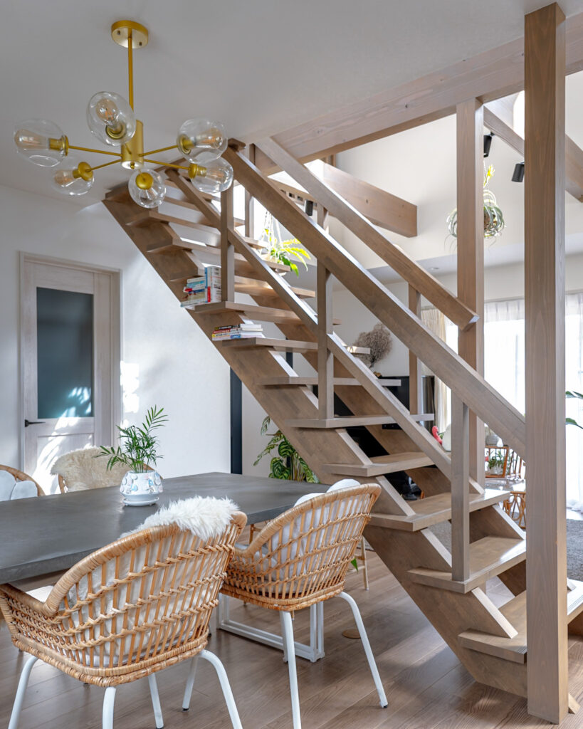 リビングとダイニングは、オープン階段で緩やかに空間を仕切っています。