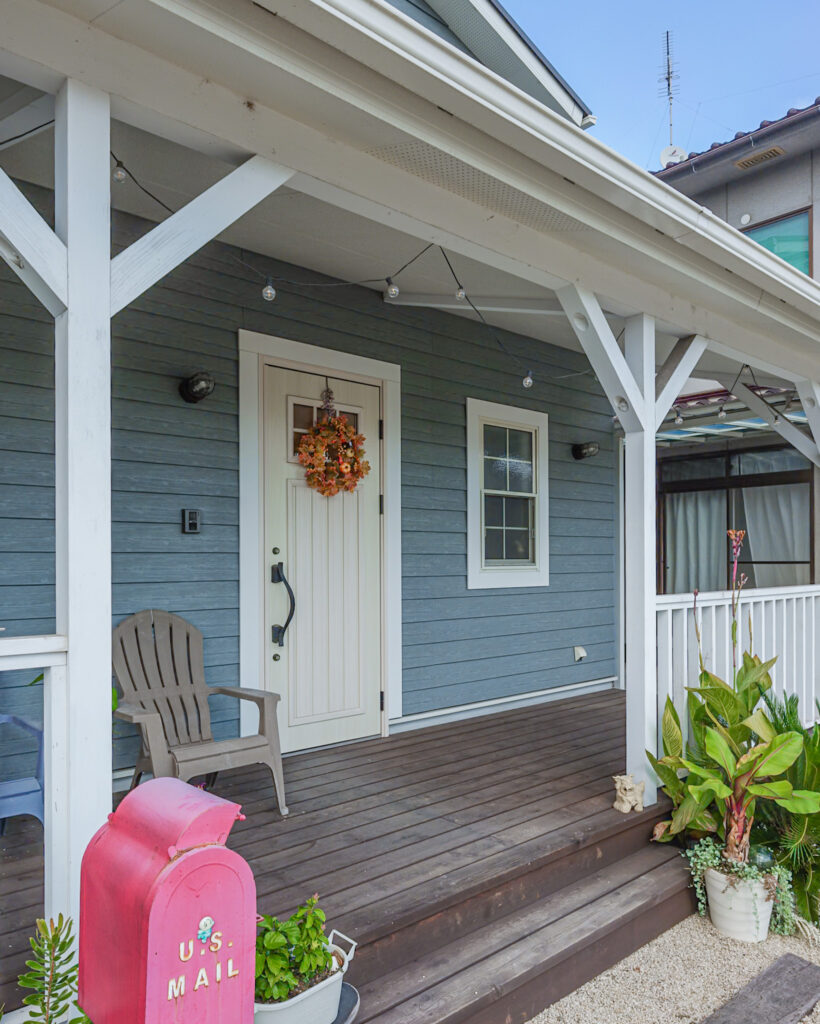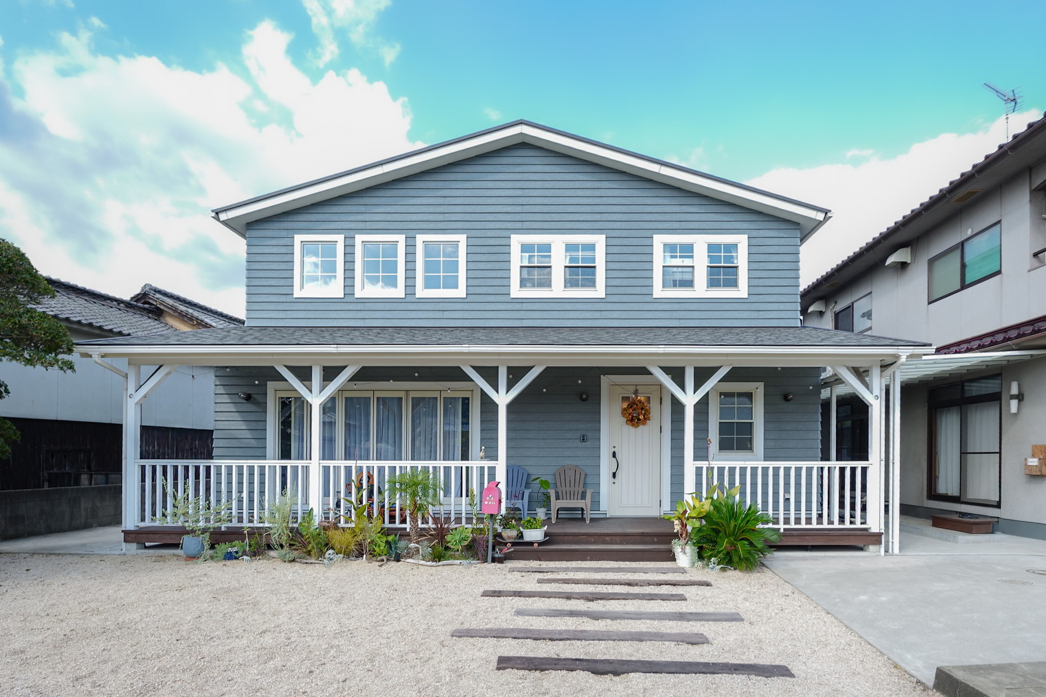 このお家は、人気のラップサイディングと外枠付きの窓、玄関前のカバードポーチなど、アメリカン仕様にこだわったデザインが特徴です。