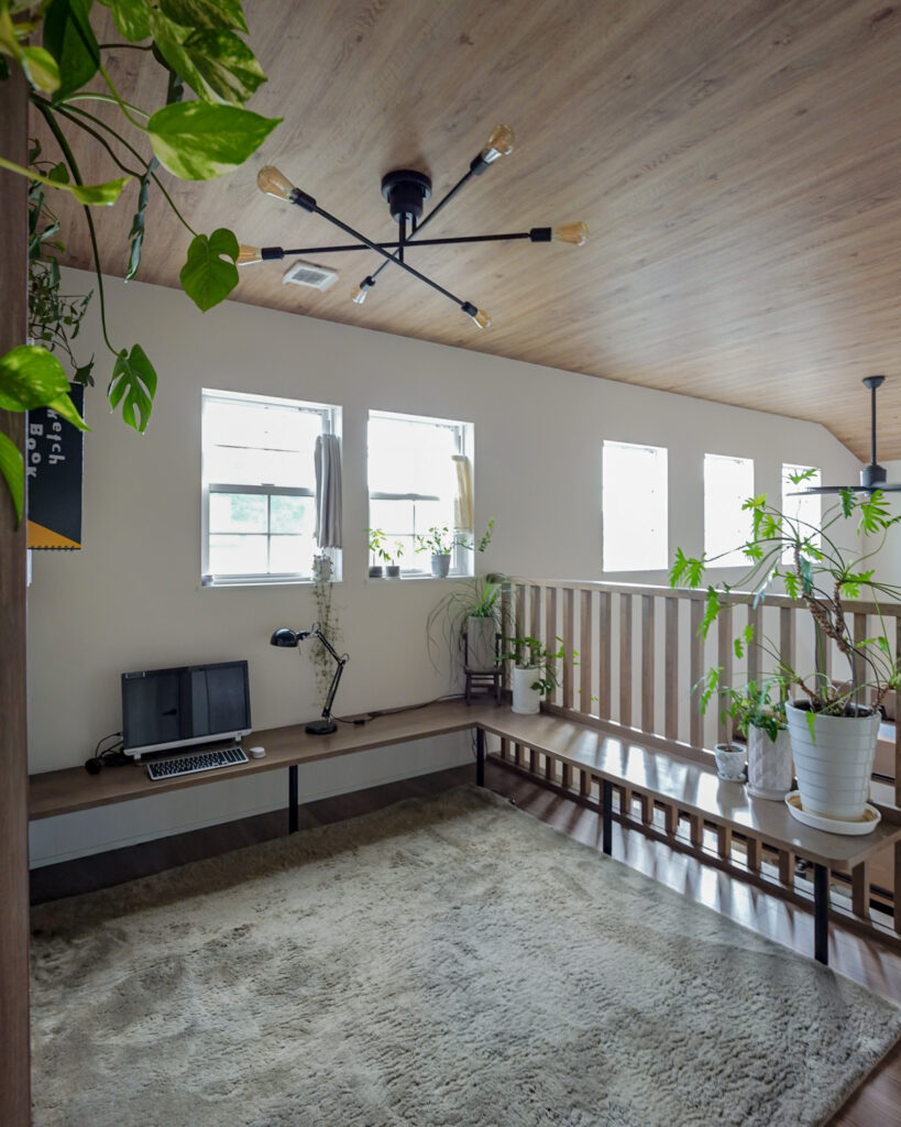プライバシーに配慮しつつ、採光と通風を確保するために、天井付けの横長窓を採用しています。